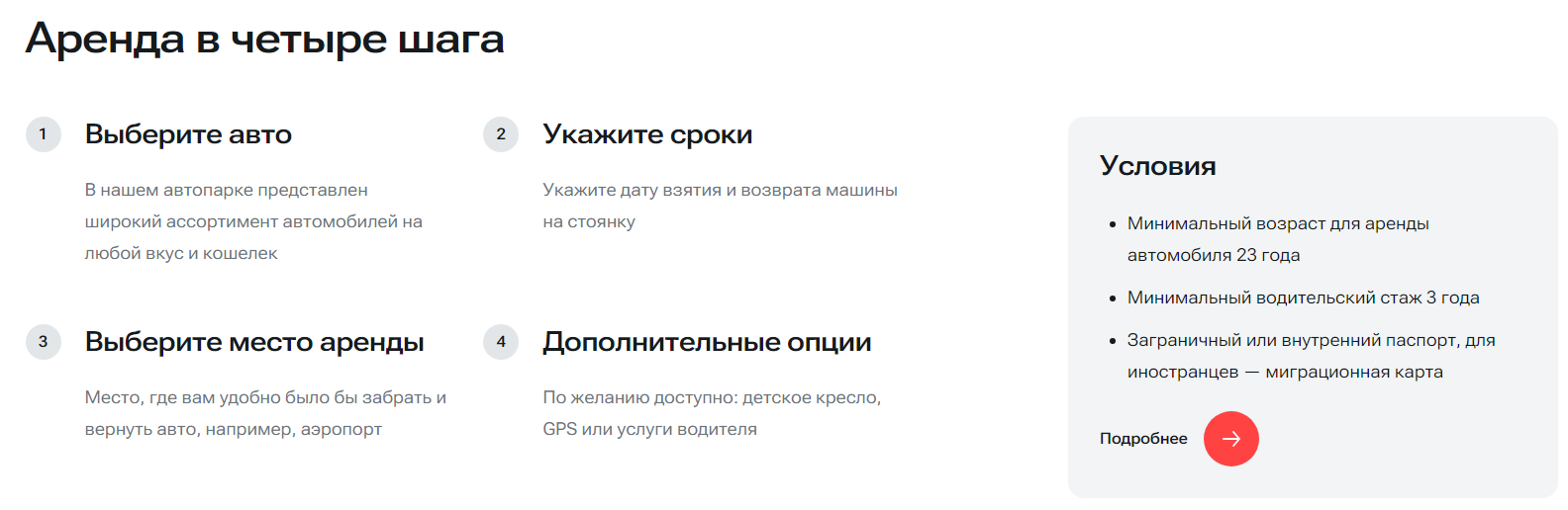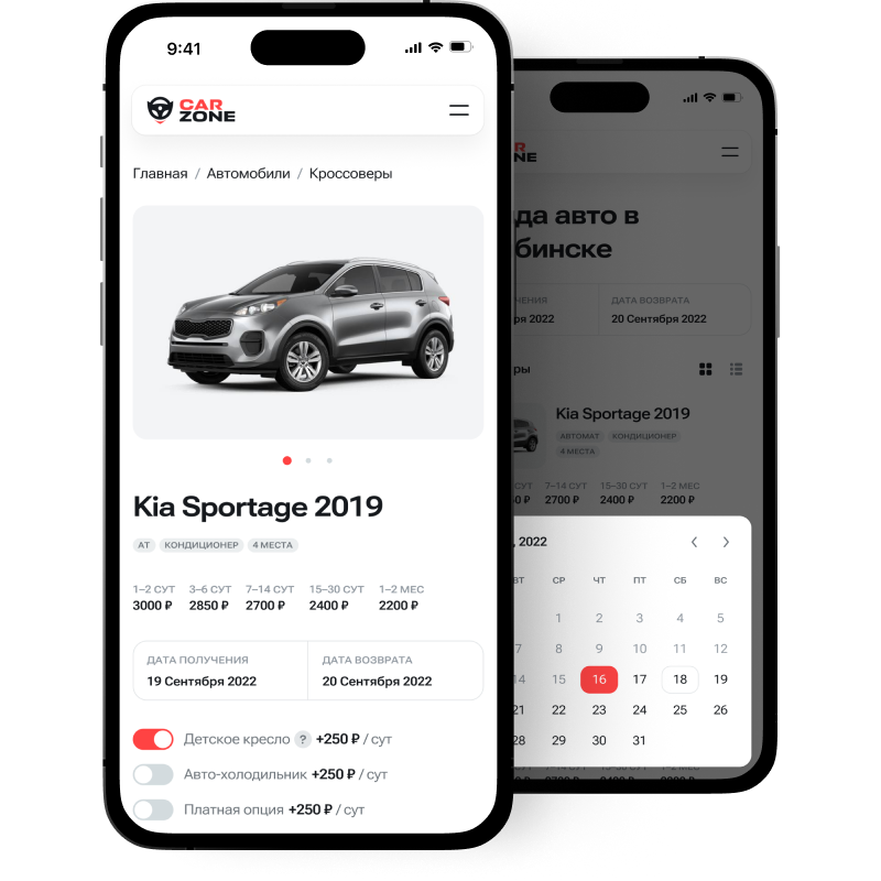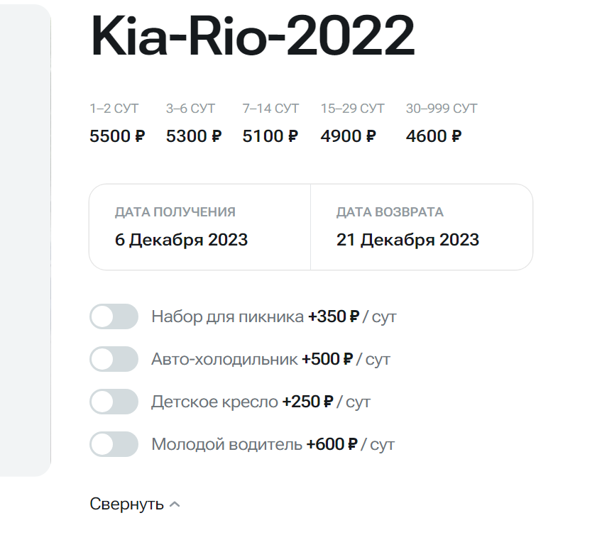 Также, в шаблоне предусмотрена возможность добавления дополнительных услуг, таких как наличие или отсутствие детского кресла и авто-холодильник. Список услуг не ограничен и вы можете создать свой уникальный набор услуг.